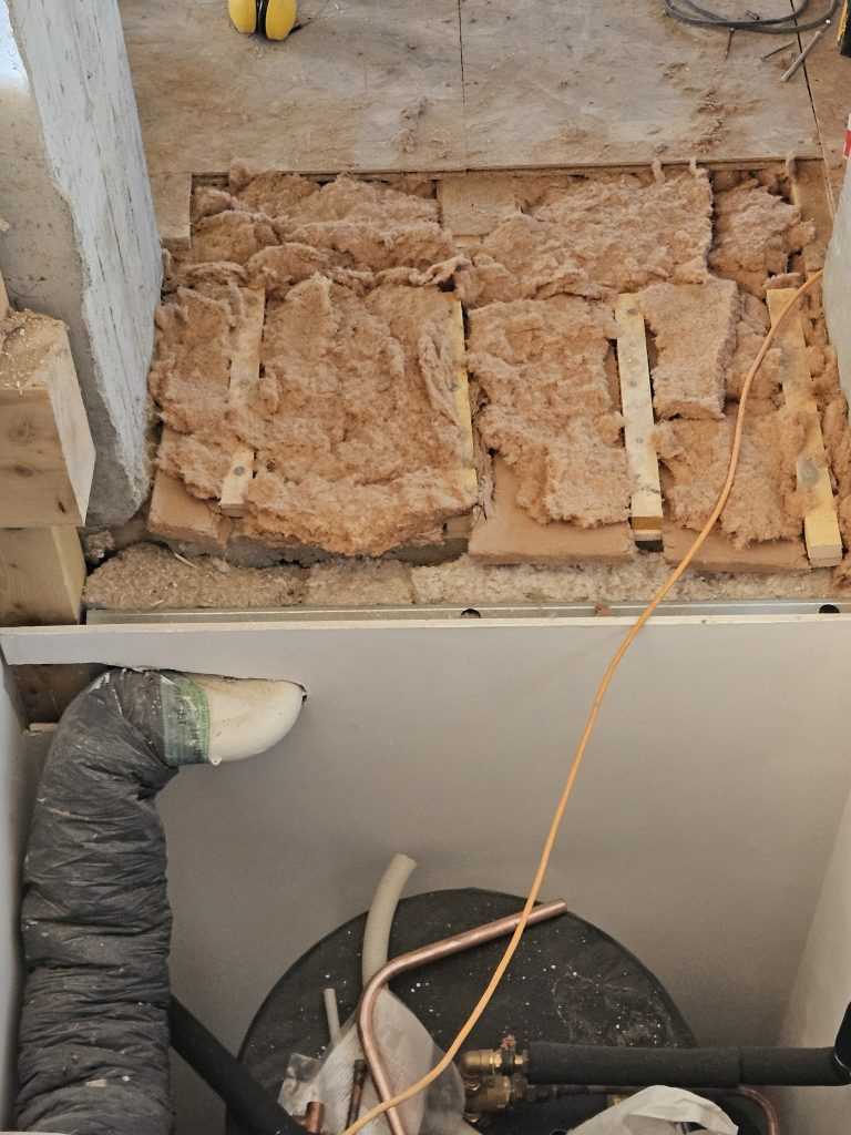 Pour cela, nous allons vider un peu la zone des tuiles jetées dedans. Nous y mettrons des graviers pour être plus agréable.